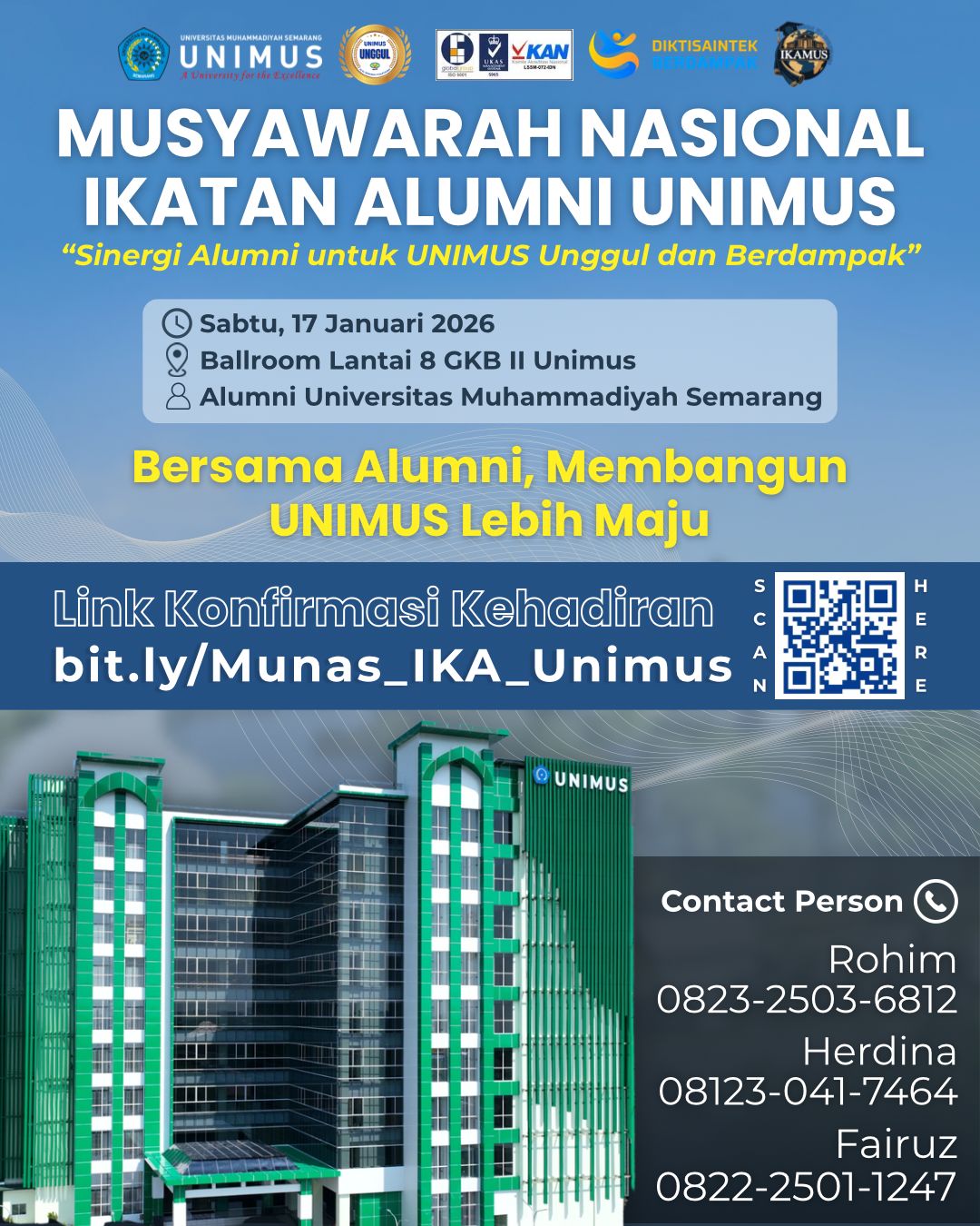 Assalamu’alaikum warahmatullahi wabarakatuh.📣 Musyawarah Nasional Ikatan Alumni UNIMUSDalam rangka memperkuat peran dan kontribusi alumni, Universitas Muhammadiyah Semarang mengundang seluruh alumni...