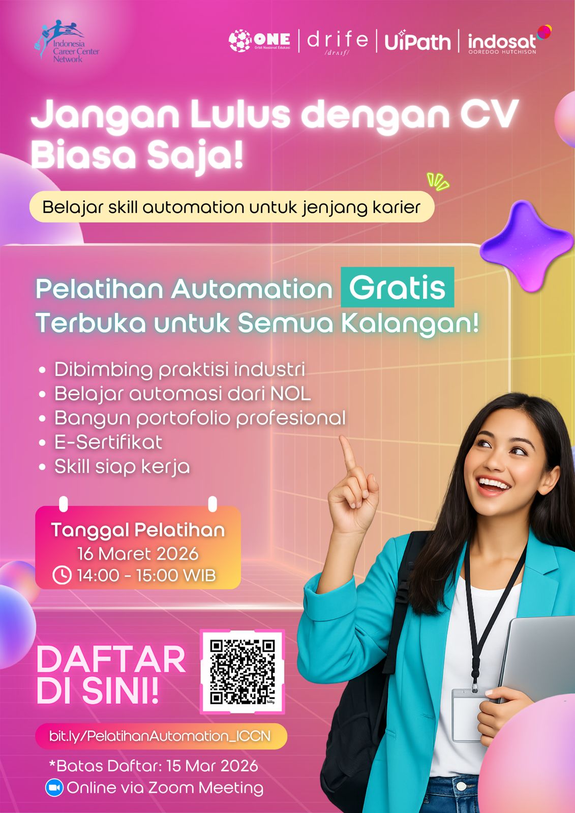 Jangan Mau Lulus Cuma Berbekal IPK! 👩‍🎓✨Hari gini punya CV yang isinya cuma pengalaman organisasi aja belum cukup, lho. Industri...