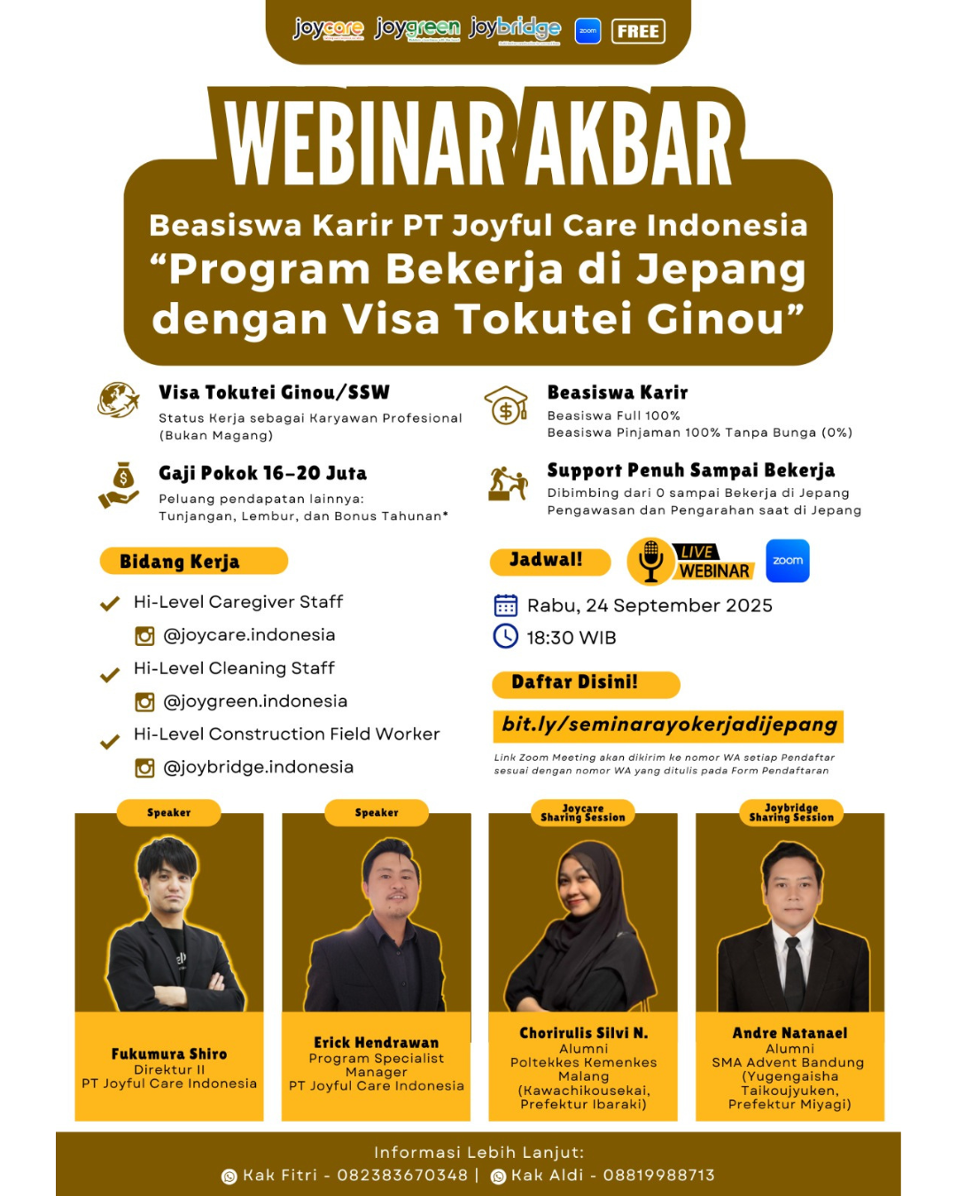 Webinar Akbar - Beasiswa Karir "Program Bekerja Di Jepang dengan Visa Tokutei Ginou"